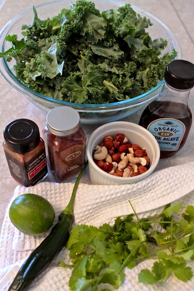 These cilantro lime kale chips are addicting! A little spicy, sweet, salty, tart and bitter… they hit a nice balance. The cilantro is just enough not to overpower and the lime and creamy nuts keep the heat, which creeps up later, from being too hot. I asked Papa Bird what he thought of the “sauce” after blending it. “Does it need anything?” He said, “A cool ginger beer with tequila to wash it down.” I’ll take that as high praise.