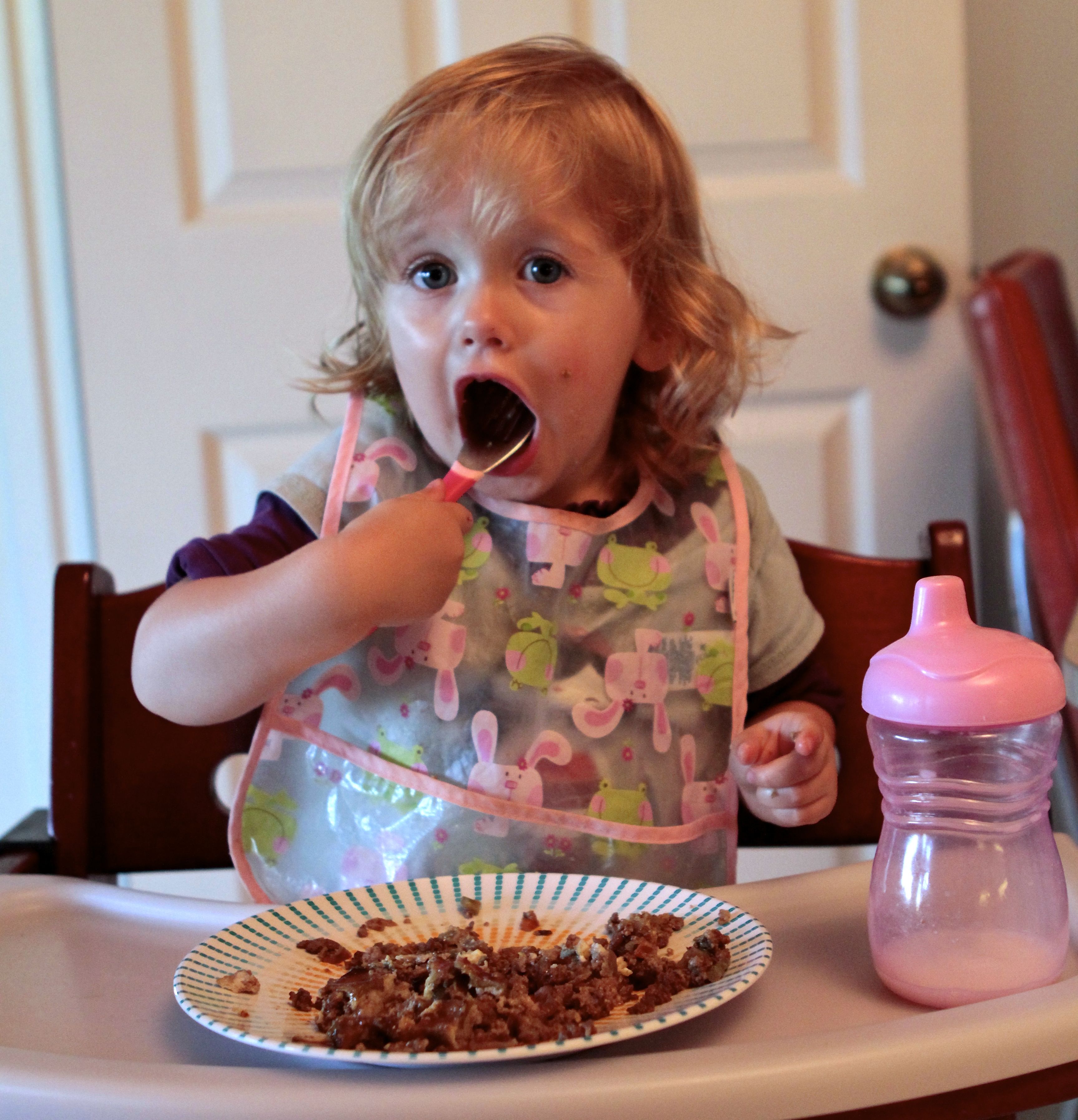 Reserve some of the “batter” with all the ingredients added, minus the egg. Blend or grind in a baby food mill. Add a little breastmilk, maybe some avocado. Delicious! Babies love the naturally sweet taste of beans and they are an excellent vegetarian source of protein.