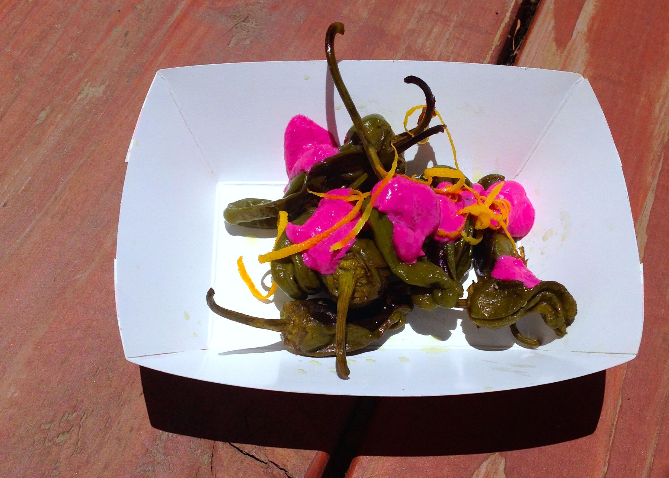After the tour we were treated to lunch by the young and talented chefs of Salt & Cleaver. For a sausage restaurant (“sausage” is in their url), they prepared a surprisingly plant based and delicious meal. Highlights for me included Padron peppers with a beet and goat cheese sauce, finished with orange zest; a zucchini based “mac and cheese’ (no noodles but plenty of cheese); and a watermelon and feta salad with house made pickles. The restaurant is in Hillcrest and looks like a fun night out. Next mamas’ night out??